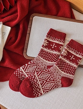 Damen Crew Socken Dicke warme Wintersocken Weihnachten Outdoor Ferien Polyester Basic Klassisch Lässig Elastisch Warm 1 Paar