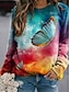 Damen Pullover Sweatshirt Tiermotiv Schmetterling Vintage Lässig Langarm Rundhalsausschnitt Normale Oberteile Lässig Straße Alltagskleidung Blau Frühling Herbst