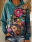 Damen Kapuzenpullover Blumen Grafik Vintage Lässig Langarm Mit Kapuze Normale Oberteile Lässig Straße Alltagskleidung Patchwork Druck Fronttasche Purpur Braun Grün Frühling Winter