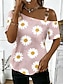 Damen T Shirt T-Shirt Blumen Grafik Mode Klassisch Lässig Kurzarm Ein-Schulter Normale Oberteile Täglich Ausgehen Wochenende Druck Weiß Rosa Grün Sommer Frühling