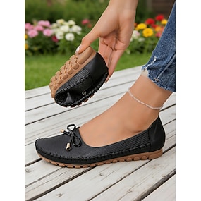 Damen Mandelförmige Kunstleder Slipper mit Schleife und strukturiertem Design - Bequeme Mokassins für lässige und alltägliche Trageanlässe