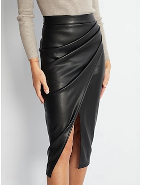 Damen Elegant Mode Midi Hohe Taille Röcke Einfach Gerafft Gespleißte Enden Unelastisch Täglich Straße Weinrot Schwarz Braun Beige Frühling