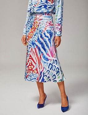 Top aus seidigem Satin mit Dolmanärmeln und Hibiskus-Traummotiv