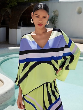 Sommerliche Auszeit: Geometrisches Satin-Top mit Dolmanärmeln
