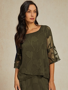 Mitternachtsblaues Oberteil aus barockem Chiffon mit 3/4-Ärmeln