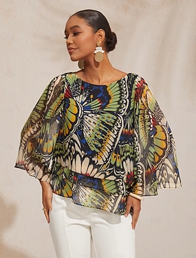 Dschungel-Schmetterlings-Top aus fließendem Chiffon