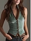 Damen Bluse Ärmelloses Shirt Knöpfe Farbblock Stilvoll Western Klassisch Ärmellos V Ausschnitt Normale Oberteile Täglich Ferien Ausgehen Grün Sommer Frühling