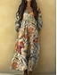 Damen Maxikleid Shiftkleid Urlaub Lässig Strand Ausgehen Lässiger Schnitt Blumen Grafik Langarm V Ausschnitt Marineblau Rosa Beige Sommer Frühling