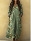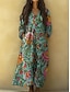 Damen Maxikleid Sommerkleid A Linie Kleid Urlaub Lässig Boho Strand Ausgehen Lässiger Schnitt Blumen Grafik Langarm V Ausschnitt Hellgrün Grün Khaki Sommer Frühling