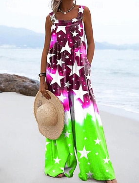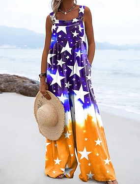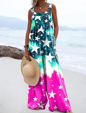 Damen Latzhose Aktiv Grafik Ärmellos Ärmellos Weites Bein Tasche Knöpfe Täglich Strand Lässiger Schnitt Blau Weiß Rote Sommer