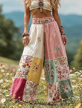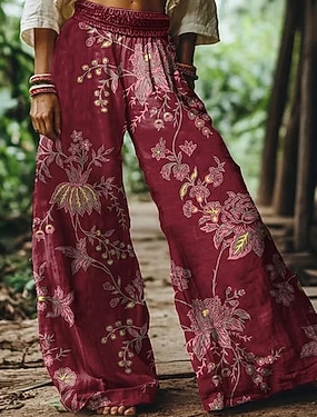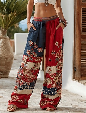 Damen Weite Hosenbeine Urlaub Vintage Ethno-Stil Volle Länge Hohe Taille Grafik Gestreift Abstrakt Schnelltrocknend Atmungsaktivität Weich Unelastisch Lässig Outdoor Urlaub Blau Rot Grün Sommer