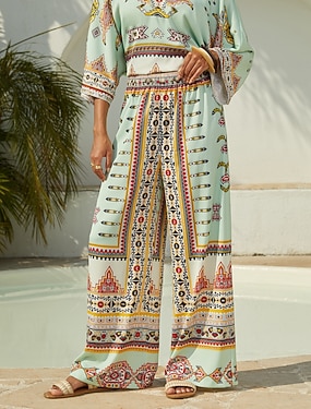 Wilder Hibiskus-Traum: Seidensatin-Hose mit weitem Bein