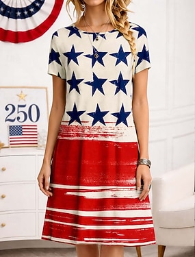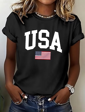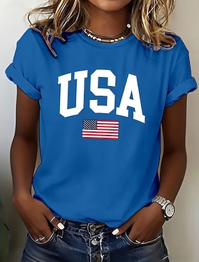 Unabhängigkeitstag patriotisches Frauen T-Shirt Grafik Flagge Vintage stilvoll lässig reguläre Oberteile täglich Wochenende Druck Rot Blau Staubblau Sommer