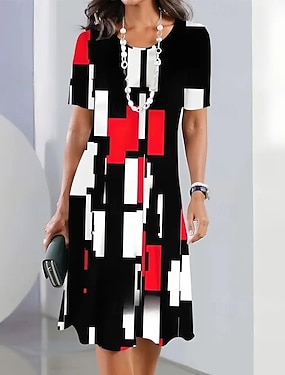 Damen Weiblich Druckkleid Weiß Halbarm Blumen Elastischer Bund Drucken Sommer Frühling Frühling & Sommer Boot Rundhals Elegant Bequem XS S M