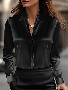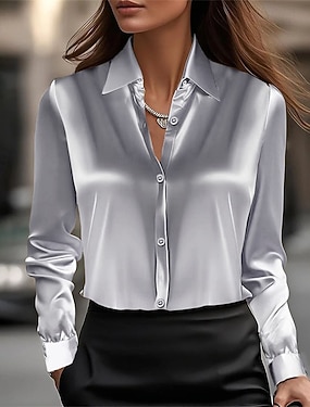 Damen Hemd Elegant Satin-Top Bluse Gerafft Knöpfe Drapiert Einfarbig Einfach Elegant Vintage Damen Langarm V Ausschnitt Normale Oberteile Täglich Arbeit Ferien Schwarz Weiß Grau Herbst Winter