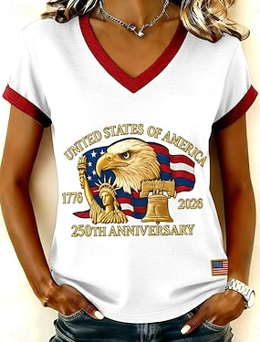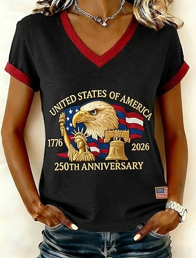 Unabhängigkeitstag patriotisches Damen T-Shirt Druck Grafik Flagge Vintage stilvoll klassisch Kurzarm V-Ausschnitt reguläre Oberteile täglich Blau Schwarz Weiß Rosa Sommer Frühling