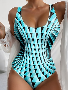 Damen Einteiliger Badeanzug Slimming Monokini Hoher Schnitt Bauchkontrolle Hohe Taille Schlank Rücklos Urlaub Vintage Ombre Grafik U-Ausschnitt Ärmelloses Badeanzug