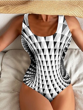 Damen Einteiler Badeanzug Slimming Farbblock Bauchkontrolle Badeanzüge Geometrischer Vertikaler Streifen Druck Rundhalsausschnitt Ärmellos Sportlich s Schwarz Weiß Sommer Strand Poolmode