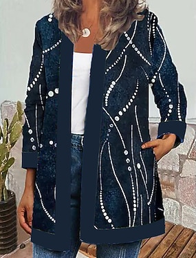 Damen Jacke Alltagskleidung Quadrathals Druck Blumen Lässig / Alltäglich Vintage Lässiger Schnitt Oberbekleidung Langarm Frühling Meeresblau S