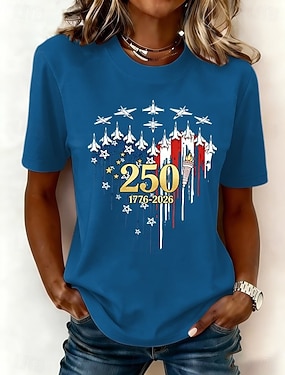 Amerikanischer Unabhängigkeitstag Damen T Shirt Druck Grafik Flagge Buchstabe Vintage Stilvoll Klassisch Kurzarm Rundhalsausschnitt Normale Oberteile Täglich Blau Schwarz Weiß Rote Sommer Frühling