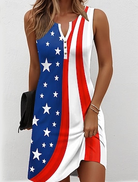Amerikanischer Unabhängigkeitstag Damen Minikleid T-Shirt-Kleid A Linie Kleid Urlaub Lässig Täglich Normale Passform Grafik Amerikanische Flagge Kurzarm V Ausschnitt Blau Weiß Rote Sommer Frühling