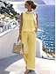 Damen Hosen-Sets Bolero-Oberteil Kunstbaumwollleinen Ärmellos Rundhalsausschnitt Einfarbig Einfach Mode Streetwear Lässig Täglich Outdoor Gelb Sommer Lässiger Schnitt