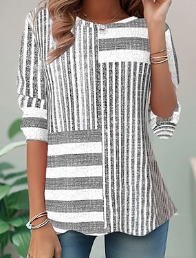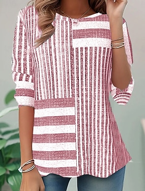 Damenshirt Langarm Rundhals Langarm Tunika Grafik Geometrisch Gestreift Vintage Stylisch Rundhals Reguläre Tops Täglicher Druck Lila Herbst Vorherherbst