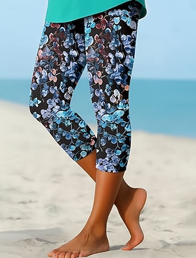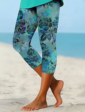 Damen Caprihose Leggings Urlaub Vintage Küsten-Oma-Stil Wadenlang Mittlere Taille Blumen Grafik Druck Komfort Unelastisch Täglich Outdoor Straße Dunkelblau Grün Sommer Frühling Lässiger Schnitt