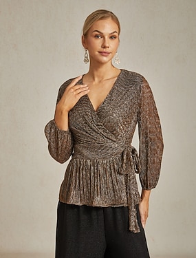 Damen Bluse Vorderknoten Metallisch Elegant Langarm V Ausschnitt Normale Oberteile Hochzeitsgast Outfits für die Verabredung am Abend Abendkleidung Rosa Sommer Frühling Herbst Winter