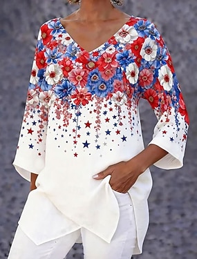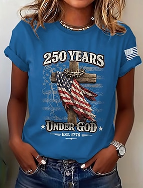 Amerikanischer Unabhängigkeitstag Damen T Shirt Druck Grafik Tag der Unabhängigkeit Vintage Stilvoll Klassisch Kurzarm Rundhalsausschnitt Normale Oberteile Täglich Blau Schwarz Weiß Rosa Rote Sommer