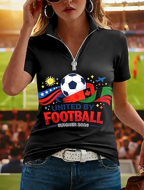 Damen T Shirt Reißverschluss Viertel Postleitzahl Grafik Geometrisch Farbblock Tropisch Hawaiianisch Stilvoll Kurzarm Hoher Ausschnitt Normale Oberteile Strandhochzeit Täglich Sport Rosa Rote Orange
