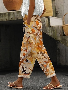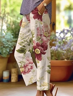 Damen Baumwoll-Leinen Hosen Baggy Hosen Leinen-ähnlich Fashion Streetwear Vollständige Länge Hoch Taille Blumenmuster Thermisch Warm Atmungsaktiv Weich Mikro-elastisch Outdoor täglich Leinen-ähnlich