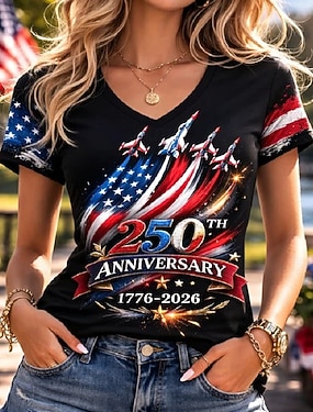 Amerikanischer Unabhängigkeitstag Damen T Shirt Druck Grafik Stern Vintage Stilvoll Klassisch Kurzarm Rundhalsausschnitt Normale Oberteile Täglich Rote Purpur Orange Grün Sommer Frühling