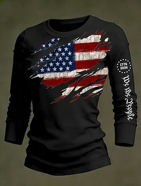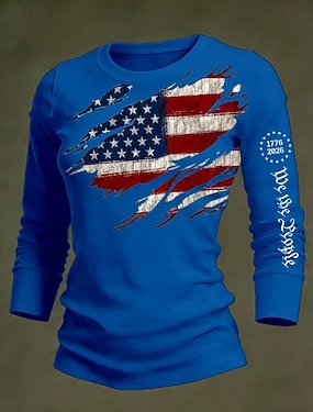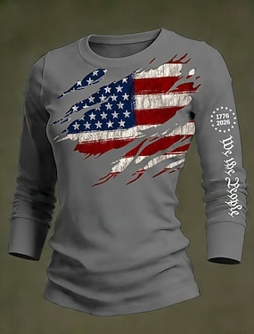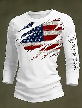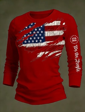 Unabhängigkeitstag Patriotische Damen Grafik Flagge Vintage Stylisch Lässig Reguläre Oberteile Täglich Weiß Rot Blau Frühling
