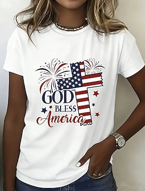Amerikanischer Unabhängigkeitstag Damen T Shirt Druck Grafik Flagge Vintage Stilvoll Klassisch Kurzarm V Ausschnitt Normale Oberteile Täglich Blau Schwarz Sommer Frühling