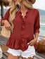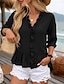 Damen Bluse Hemd aus Leinenimitat Knöpfe Einfarbig Täglich Lässig Dreiviertelarm V Ausschnitt Normale Oberteile Täglich Schwarz Weiß Rote Orange Grün Sommer Frühling Herbst