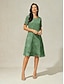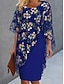 Damen Knielanges Kleid Blumenkleid Druckkleid Elegant Mode Outdoor Urlaub Ausgehen Normale Passform Blumen Halbarm Rundhalsausschnitt Blau Wein Dunkelgrün Sommer Frühling