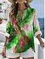 Damen Hemd Knopfleiste Bluse Kunstbaumwollleinen Knöpfe Druck Blumen Geometrisch Basic Lässig Langarm Hemdkragen Normale Oberteile Täglich Armeegrün Rote Khaki Grau Sommer Frühling Herbst