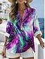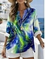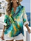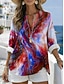 Damen Bluse Druck Grafik Geometrisch Abstrakt Vintage Täglich Stilvoll Langarm V Ausschnitt Normale Oberteile Lässig Täglich Blau Hellgrün Rote Purpur Grün Sommer Frühling