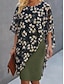 Damen T-Shirt Basic Blumendruck Kurzarm Normale Oberteile V-Ausschnitt Casual Urlaub Wochenende Blau Lila Grün