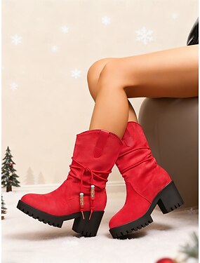 Rote Wildlederstiefeletten für Damen mit Reißverschluss und klobigem Blockabsatz, bequem und stilvoll, perfekt für Weihnachten, Winterausflüge und alltägliche Anlässe