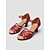 Beige Mary-Jane-Sandalen aus echtem Leder für Damen – bequeme Vintage-Schuhe aus Rindsleder mit Blumenmuster für entspannte Spaziergänge & reisen