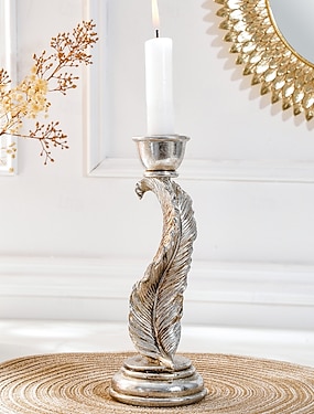 Kerzenhalter aus antikem Silber im Vintage-Stil mit Federn – rustikaler Kerzenständer aus Kunstharz als Dekoration für Zuhause, Hochzeiten, Partys und Esstische