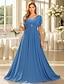 A-Linie Bodenlängen-formelle Kleider Abendkleid Brautmutterkleid Kurzarm V-Ausschnitt Elegant Vintage Party Formal Chiffon mit Falten Perlen Raffung