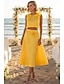 A-Linie Tee-Länge Cocktailkleider Elegant Kurzarm U-Boot-Ausschnitt Gartenparty Hochzeit Taft Stretch Satin mit Falten