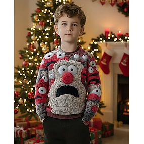 Weihnachten Jungen 3D Grafik Jeder Sweatshirt Langarm Frühling Herbst Mode Basic Kinder 4-12 Jahre Rundhalsausschnitt Outdoor Lässig Täglich Normale Passform