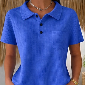 Damen Pullover Sweatshirt Knöpfe Einfach Lässig Langarm Revers Normale Oberteile Straße Alltagskleidung Blau Weiß Rosa Dunkelpink Purpur Frühling Herbst Winter
