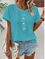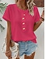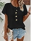 Damen T Shirt T-Shirt Knöpfe Einfach Mode Stilvoll Klassisch Kurzarm Rundhalsausschnitt Normale Oberteile Täglich Ausgehen Wochenende Blau Schwarz Rote Sommer Frühling