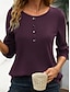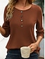 Damen Waffel T-Shirt T Shirt T-Shirt Waffelstricktops Knöpfe Einfach Stilvoll Modern Lässig Langarm V Ausschnitt Normale Oberteile Täglich Ferien Ausgehen Gelb Rote Violett Grün Leicht Blau Frühling