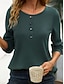 Damen T Shirt T-Shirt Knöpfe Einfach Elegant Mode Stilvoll Langarm Wasserfallausschnitt Normale Oberteile Täglich Ausgehen Wochenende Blau Rote Marineblau Grün Grau Sommer Frühling Herbst